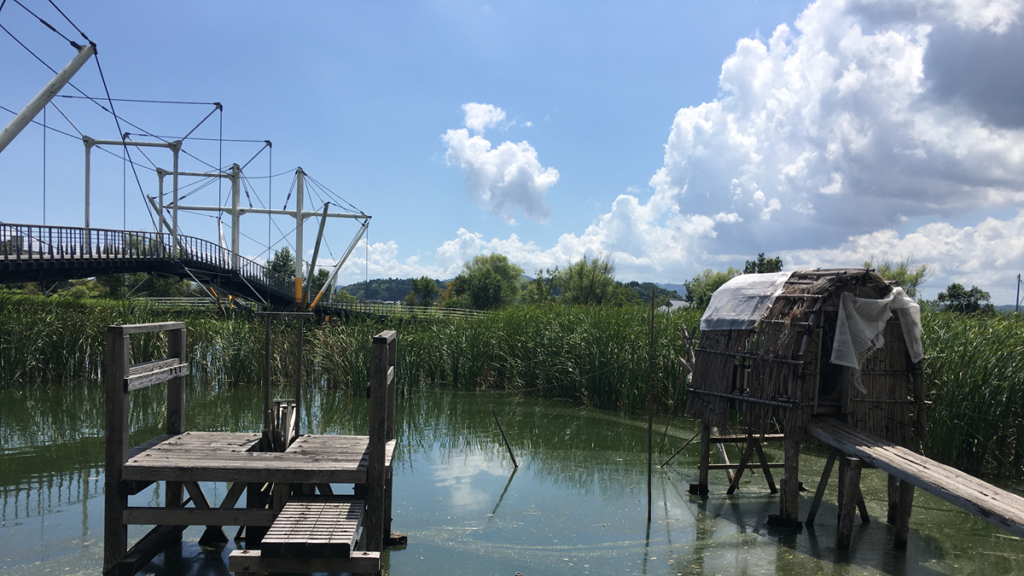 十二町潟周辺には、かつて使われていた 「アド網(仕掛け網)」 の漁法が受け継がれてきました。