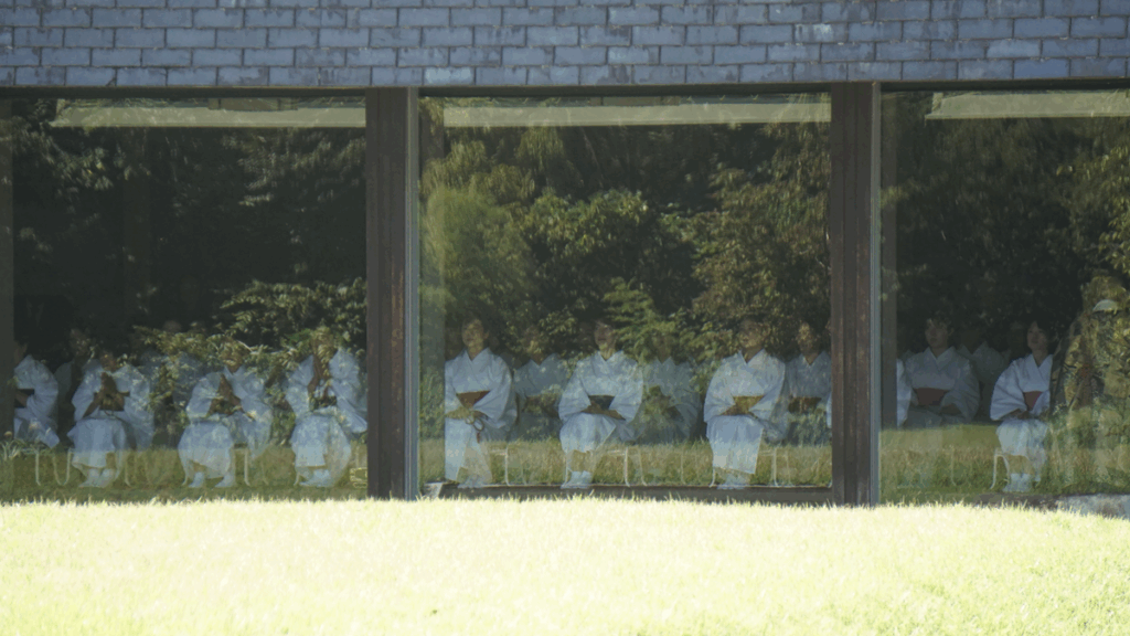 白装束に身を包み、目隠しをした女性たちが静かに橋を渡る——。