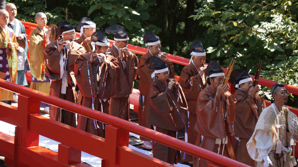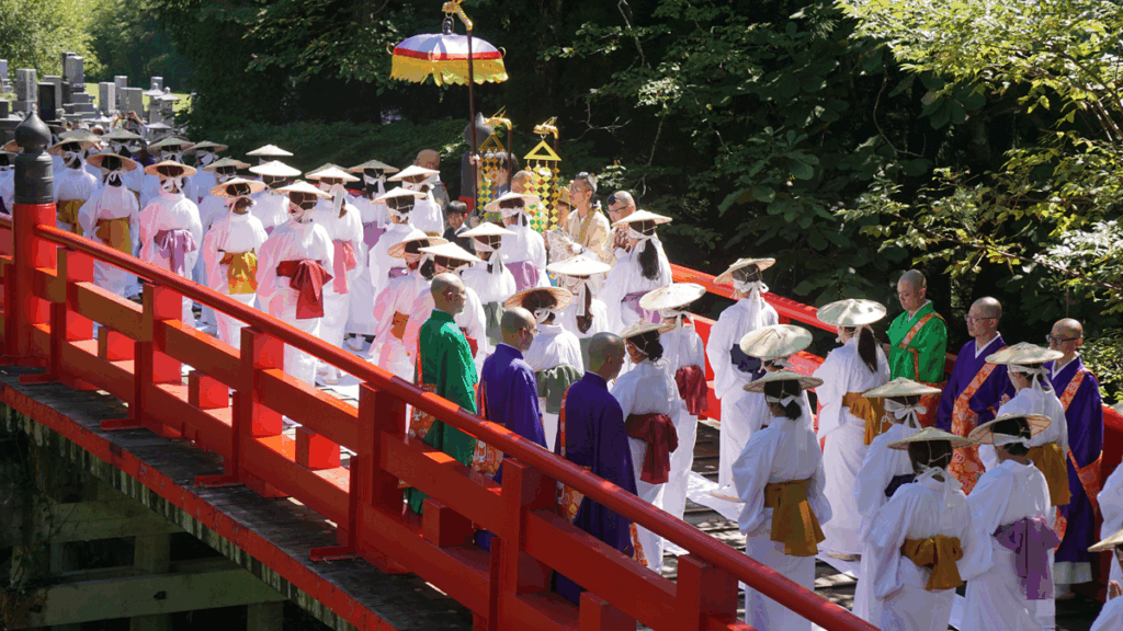 女性たちは白装束で目隠しをしながらゆっくり歩き、橋を渡ることで罪や穢れが許され、極楽浄土へ導かれると信じられてきました。