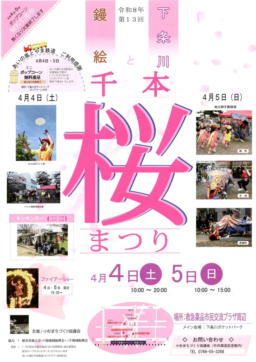 2026年は4月4日(土)~5日(日)に「鏝絵と下条川千本桜まつり」が開催されます。