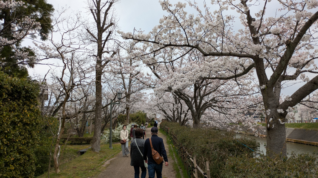 風に舞う花びらが水面に落ちて流れていく様子も美しく、時間を忘れてしまうほど。